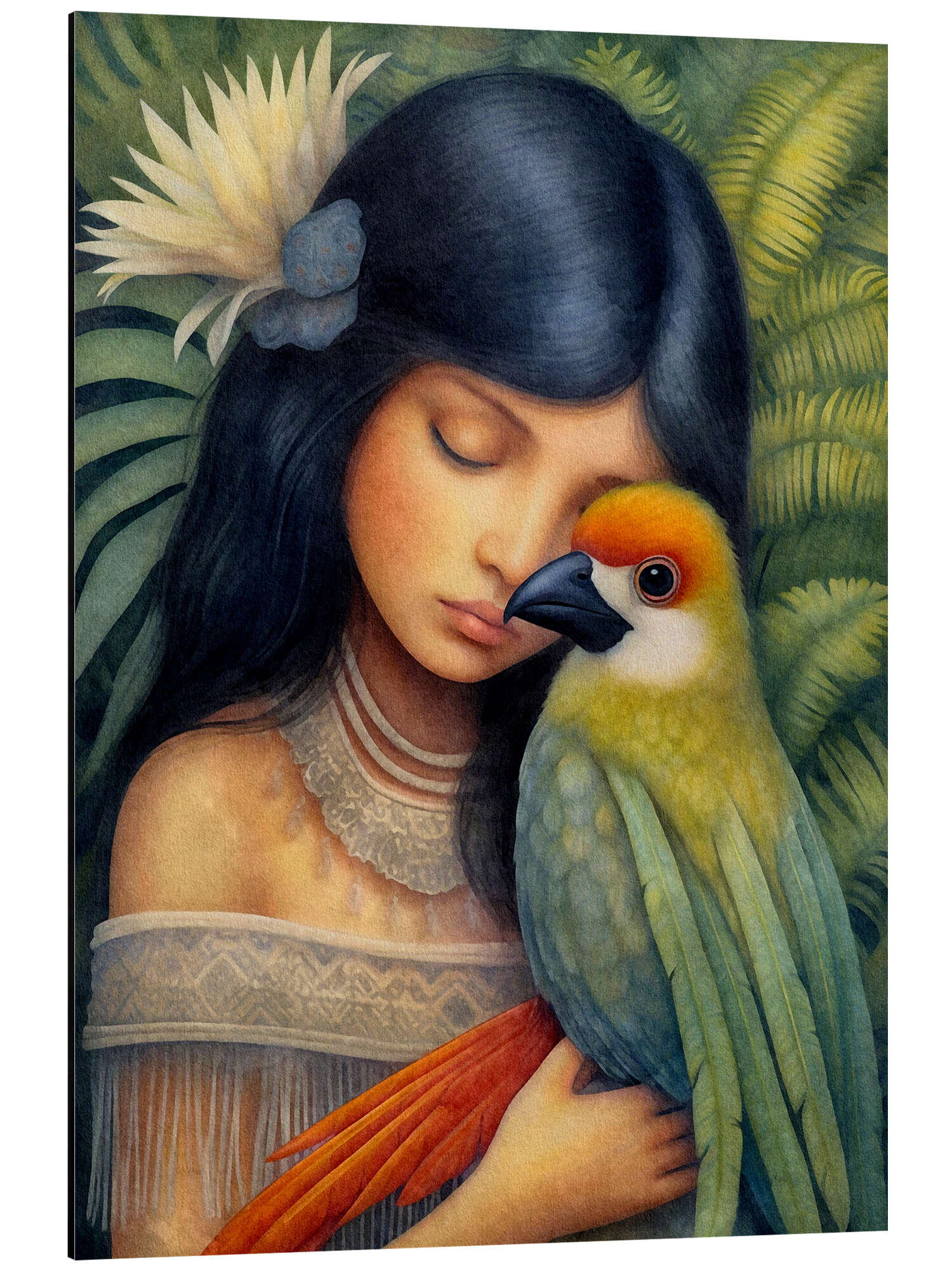Posterlounge   Wandbilder   Mädchenzimmer   Dutch Lady   Magnettafel Verträumtes Mädchen und Papagei