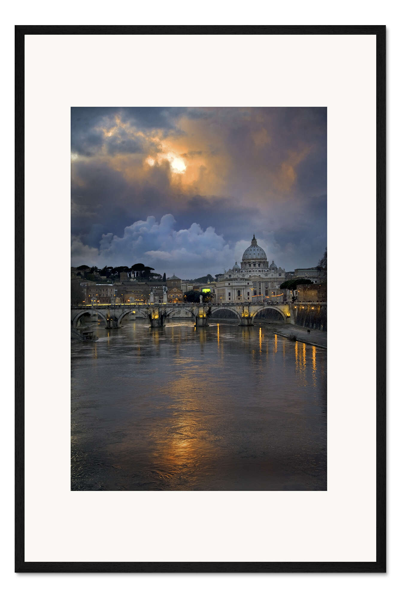 Posterlounge   Wandbilder   Fotografie   Todd Gustafson   Gerahmter Kunstdruck Sant'Angelo-Brücke am Tiber mit dem Petersdom im Hintergrund, Rom