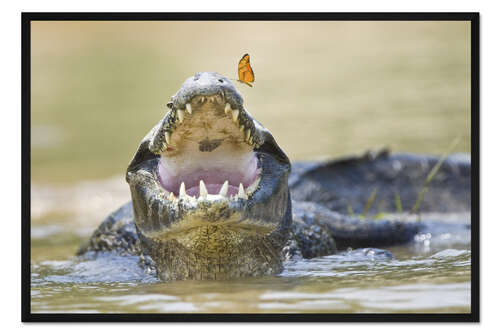 Posterlounge   Wandbilder   Fotografie   Todd Gustafson   Gerahmter Kunstdruck Pantanal-Kaiman mit Schmetterling auf Schnauzenspitze, Brasilien