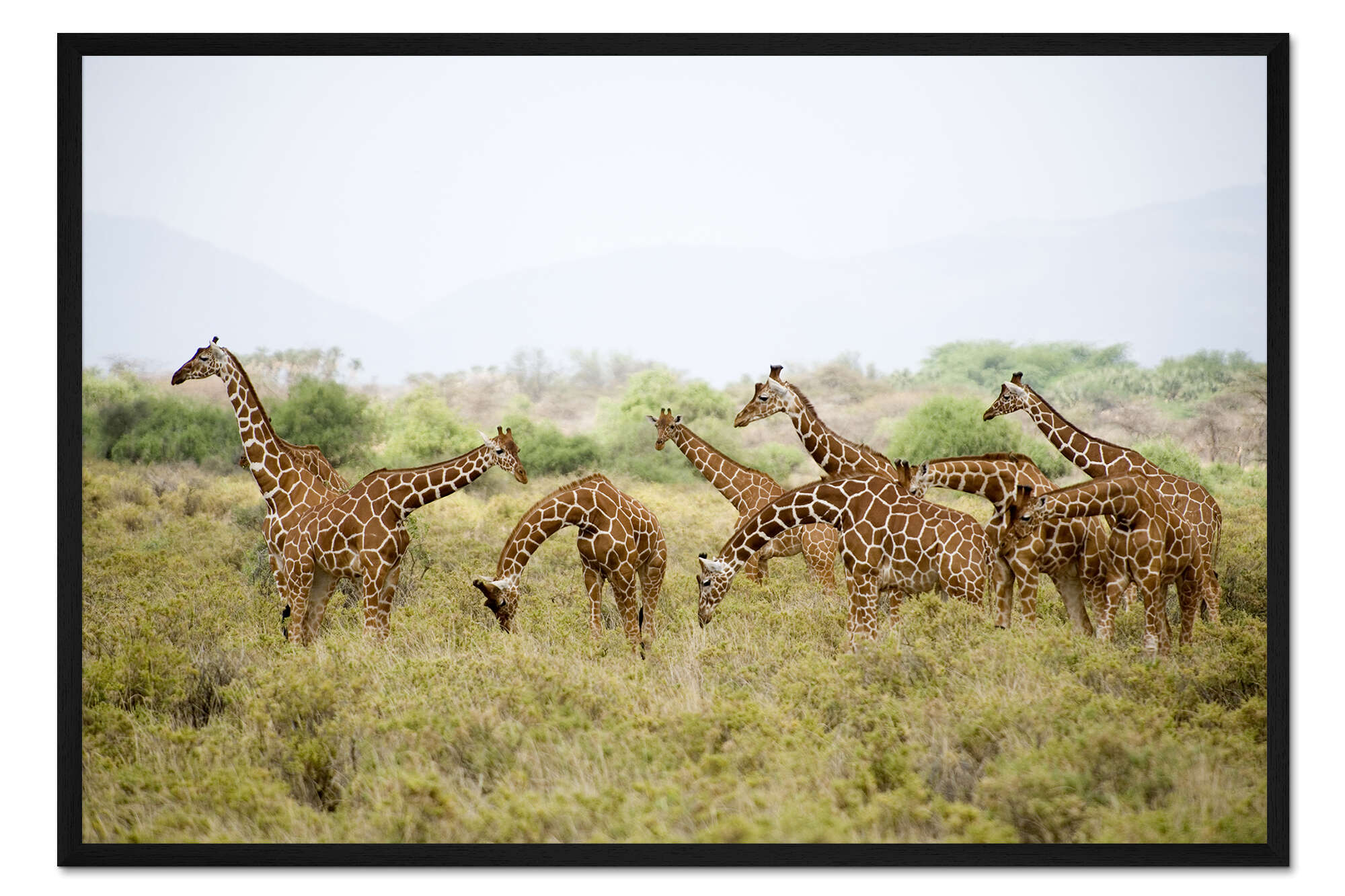 Posterlounge   Wandbilder   Fotografie   Todd Gustafson   Gerahmter Kunstdruck Netzgiraffen beim Grasen, Rift Valley, Kenia