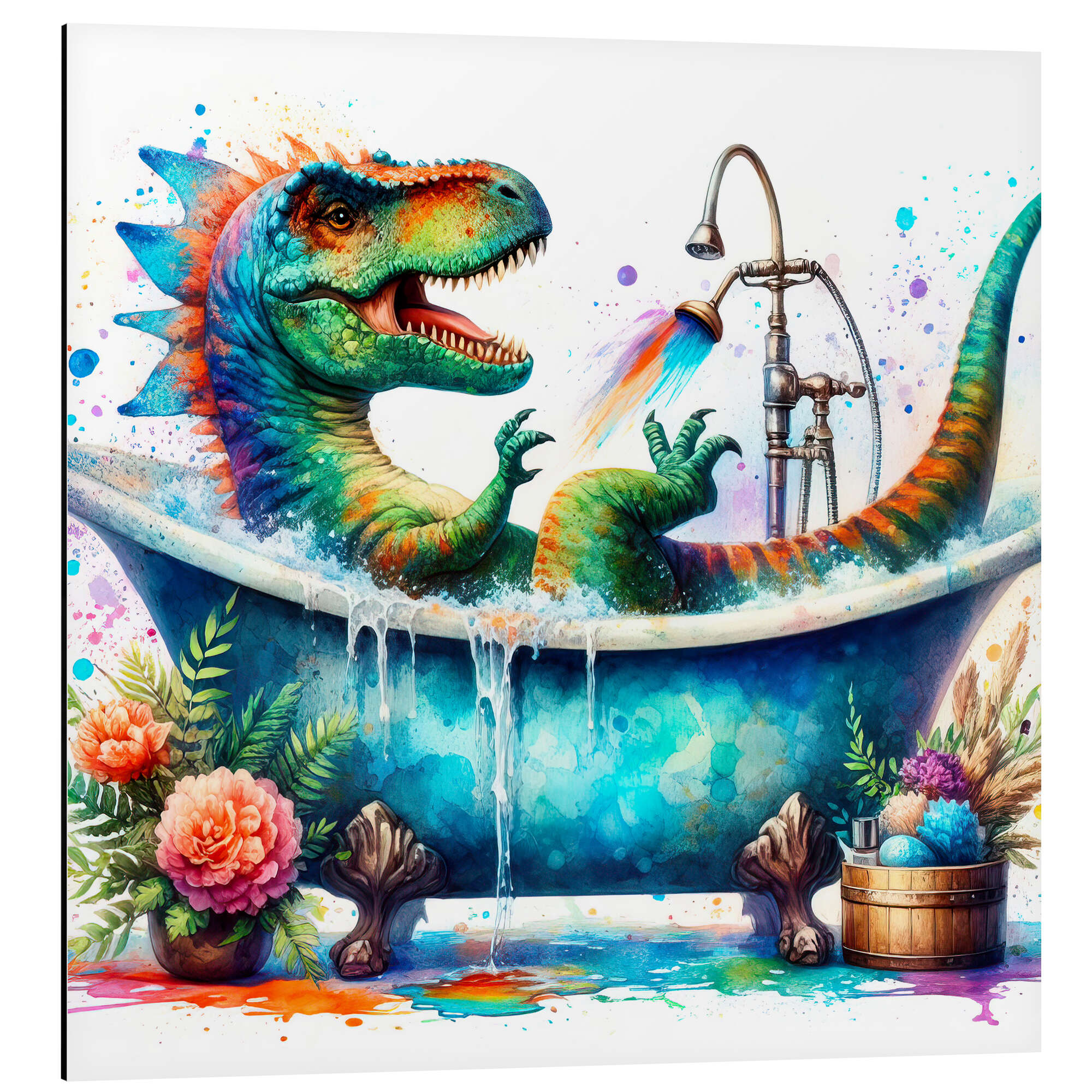 Posterlounge   Wandbilder   Malerei   Aquarell Malerei   nobelart   Magnettafel Fantasy Dino in der Badewanne II