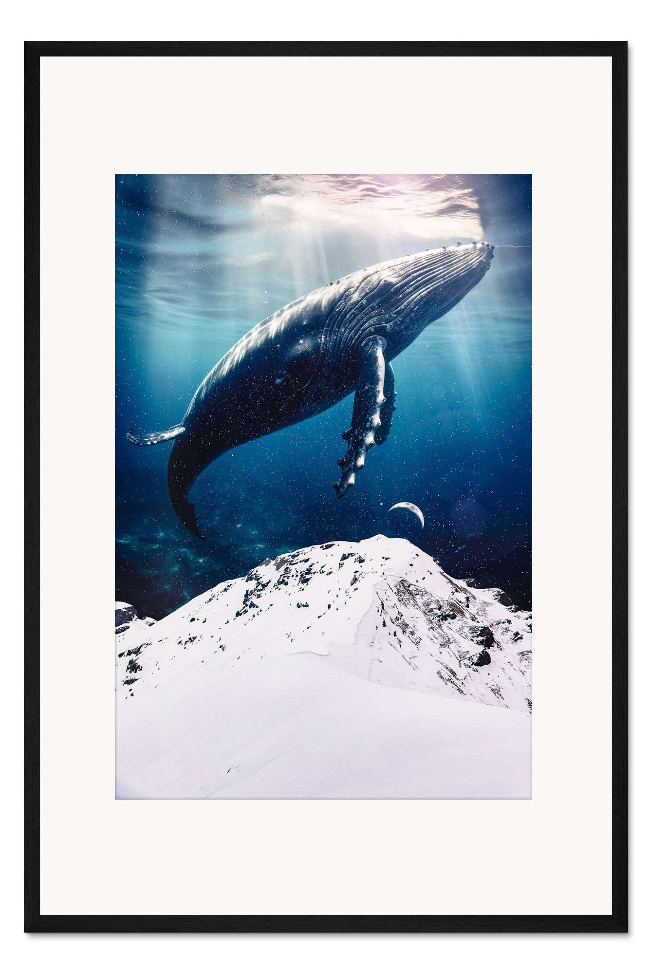 Posterlounge   Wandbilder   Blau   Gen Z   Gerahmter Kunstdruck Riesiger Blauwal über schneebedecktem Berg