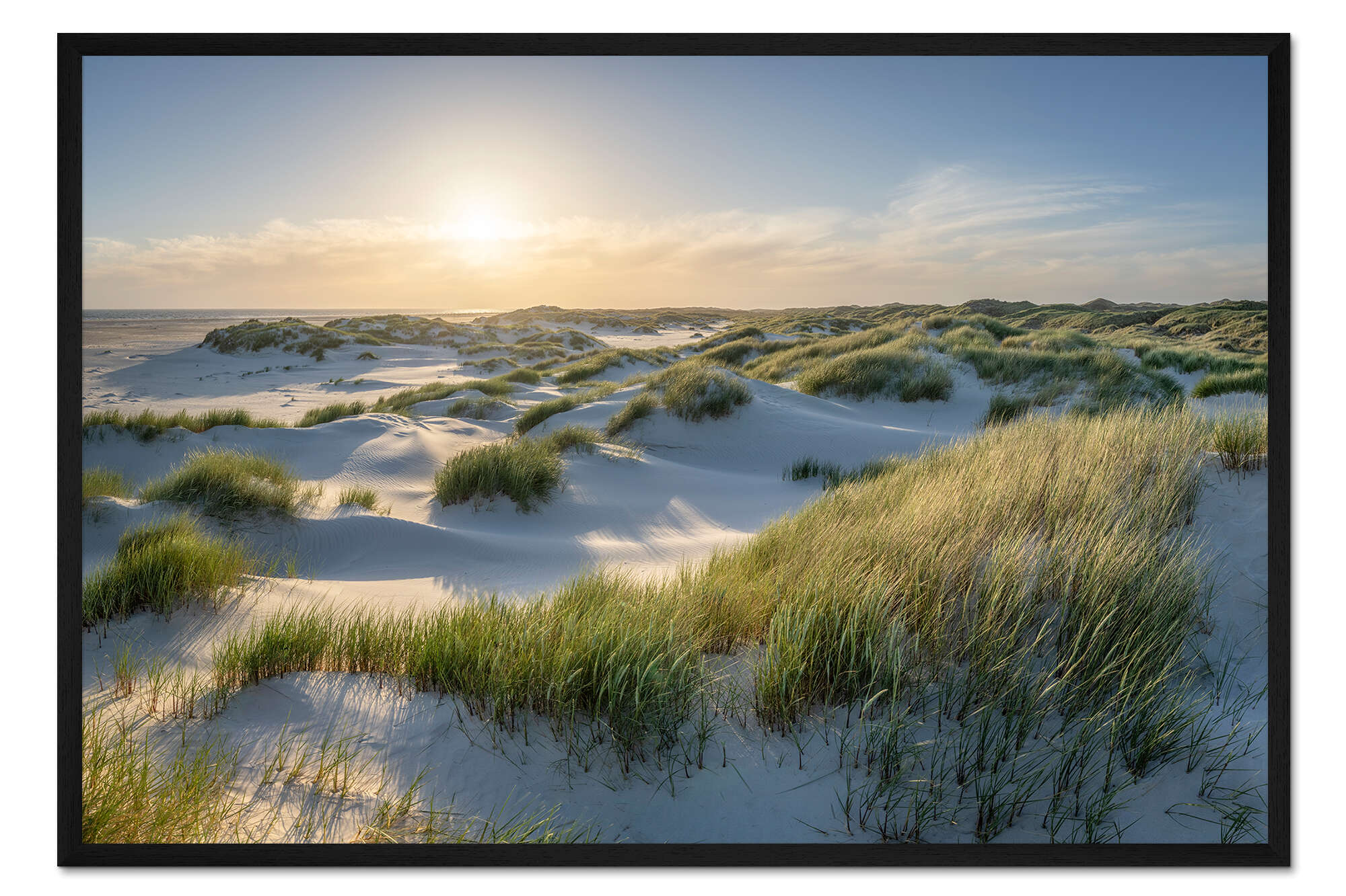 Posterlounge   Wandbilder   Blau   Jan Christopher Becke   Gerahmter Kunstdruck Am Dünenstrand bei Sonnenuntergang