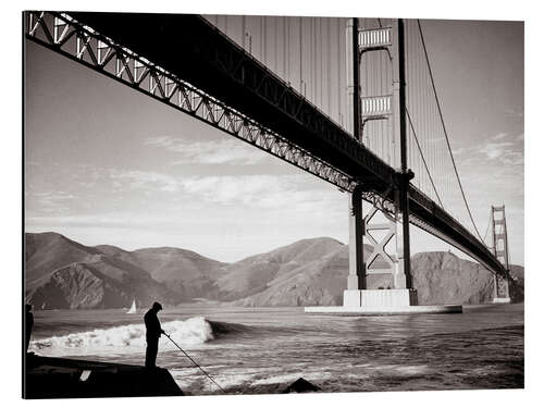 Posterlounge   Wandbilder   Schwarz-Weiß   Magnettafel 1940er Mann angelt unter der Golden Gate Bridge, San Francisco