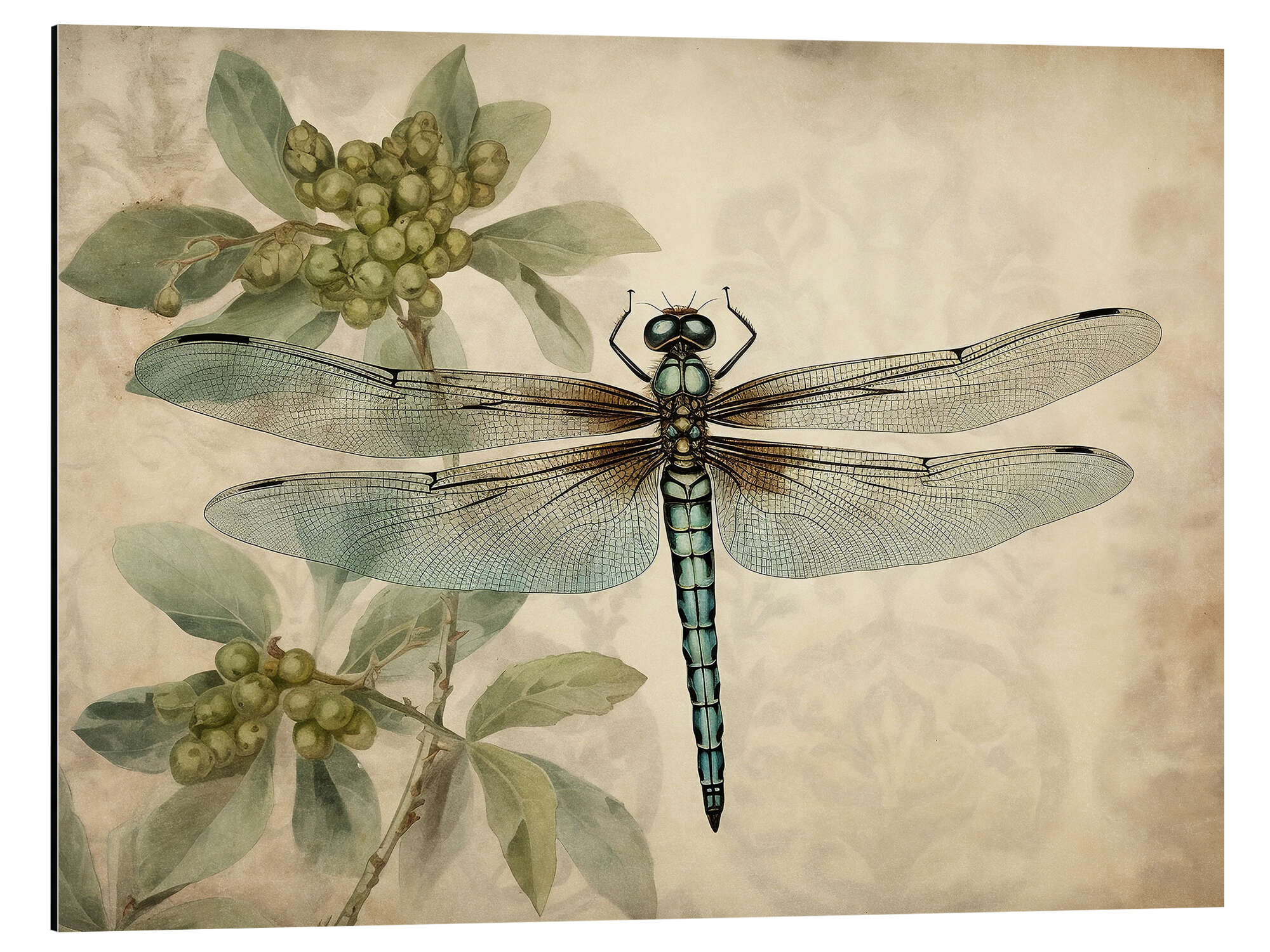 Posterlounge   Wandbilder   Beige   Olga Telnova   Magnettafel Libelle auf grünem Blumenmuster