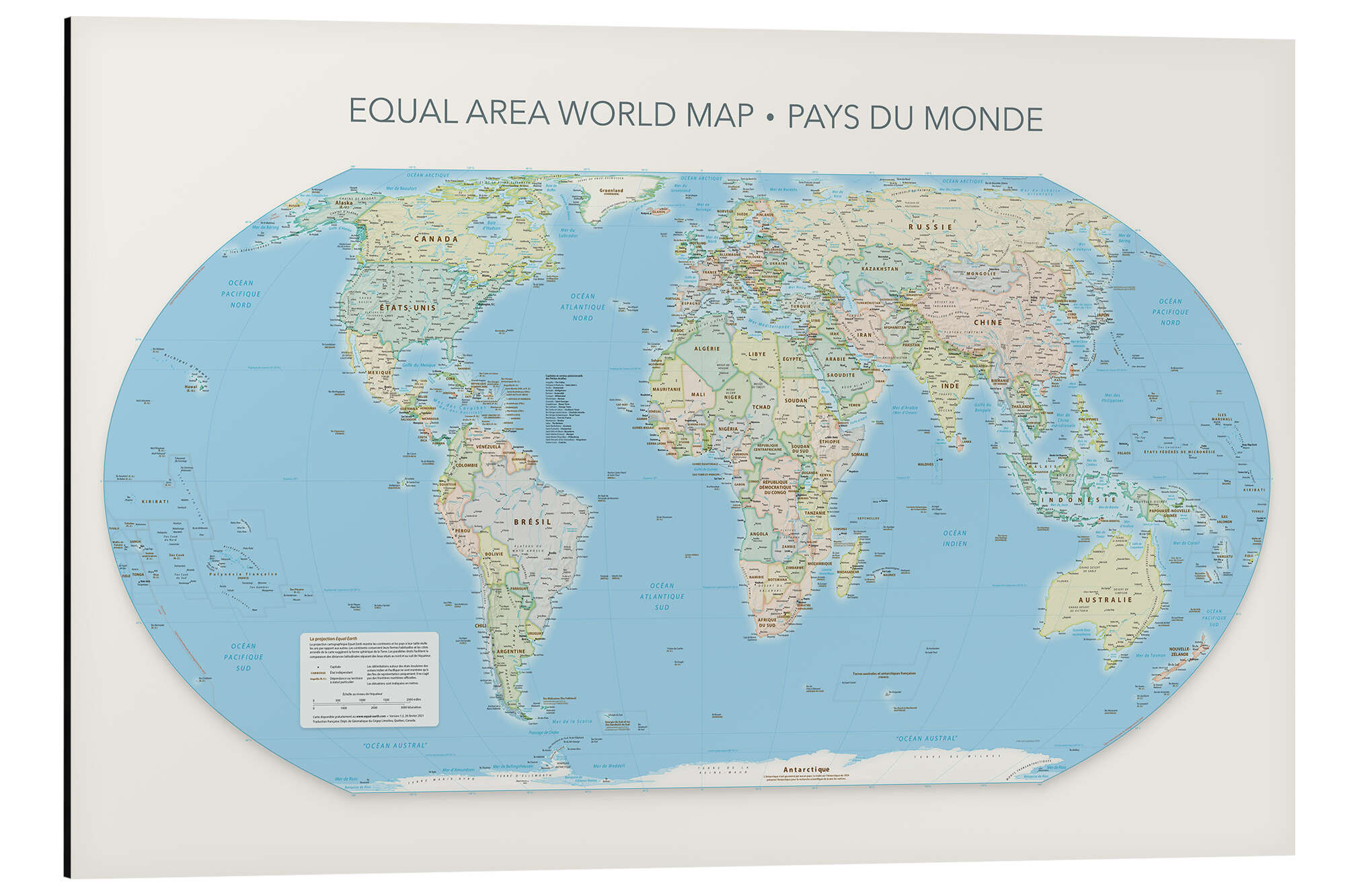 Equal Area World Map, Länder der Welt (französisch)