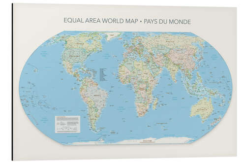 Magnettafel Equal Area World Map, Länder der Welt (französisch)