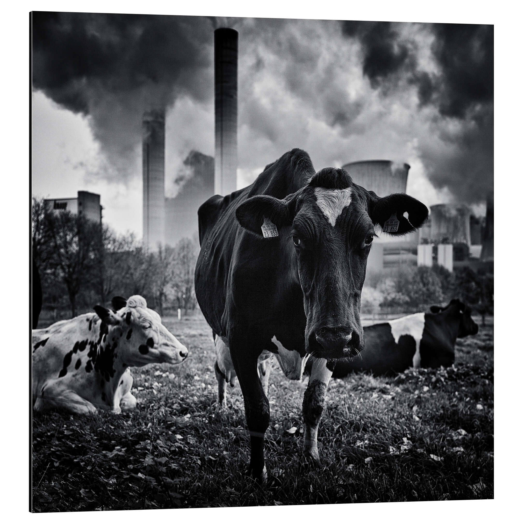 Posterlounge   Wandbilder   Schwarz-Weiß   Andrea Schuh   Magnettafel Kühe vor dem Braunkohlekraftwerk