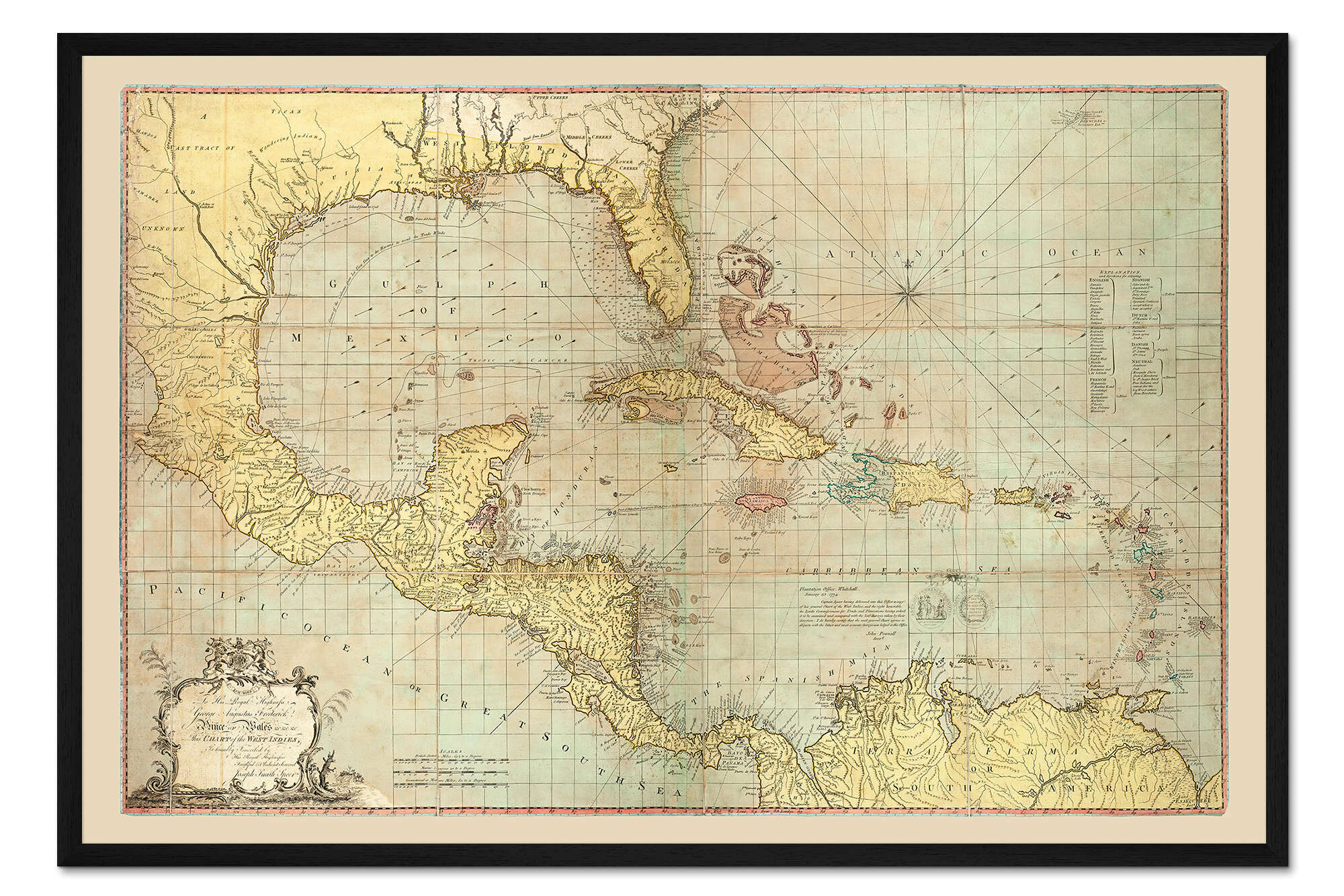 Posterlounge   Wandbilder   Karten   Land- & Weltkarten   Gerahmter Kunstdruck Karte der Westindischen Inseln, 1774