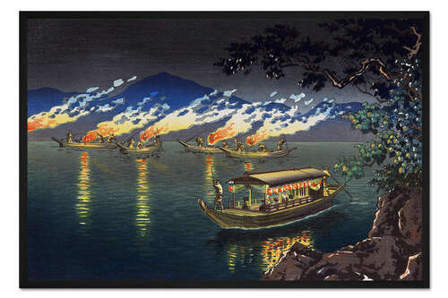 Posterlounge   Wandbilder   Malerei   Asiatische Kunst   Koitsu Tsuchiya   Gerahmter Kunstdruck Fischen nach Kormoranen in Nagaragawa, 1940