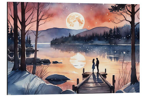 Purpurner Mond über stillen Gewässern