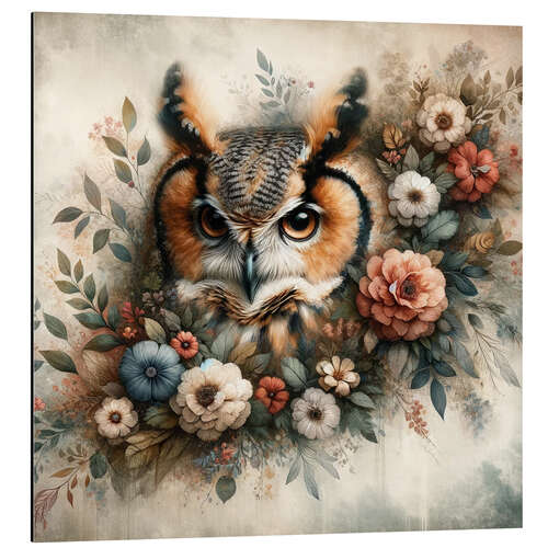Posterlounge   Wandbilder   Digitale Kunst   Michael artefacti   Magnettafel Florale Laune: Der ruhige Blick der Eule