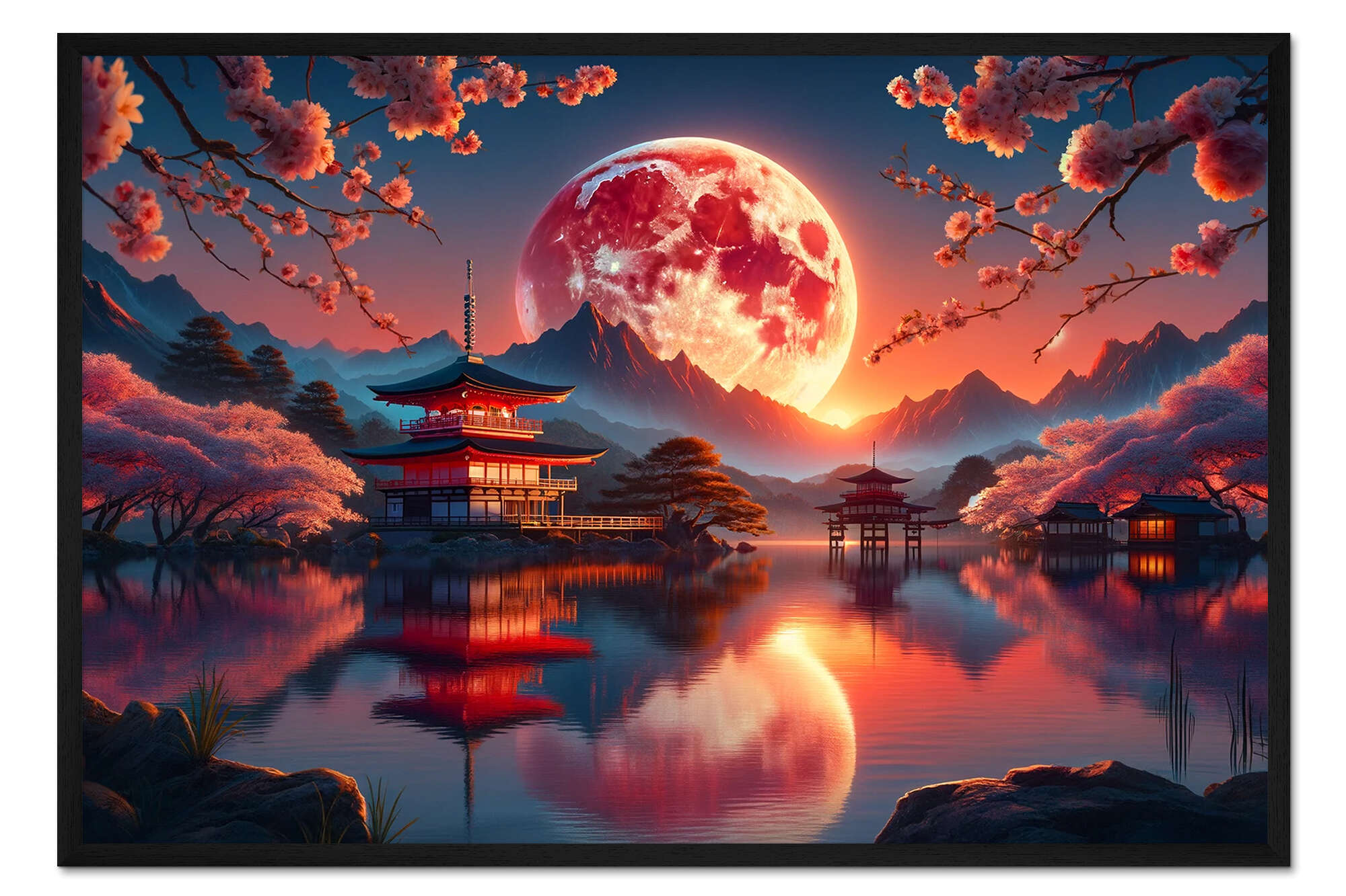 Posterlounge   Wandbilder   Digitale Kunst   Michael artefacti   Gerahmter Kunstdruck Purpurner Mond über stillen Gewässern