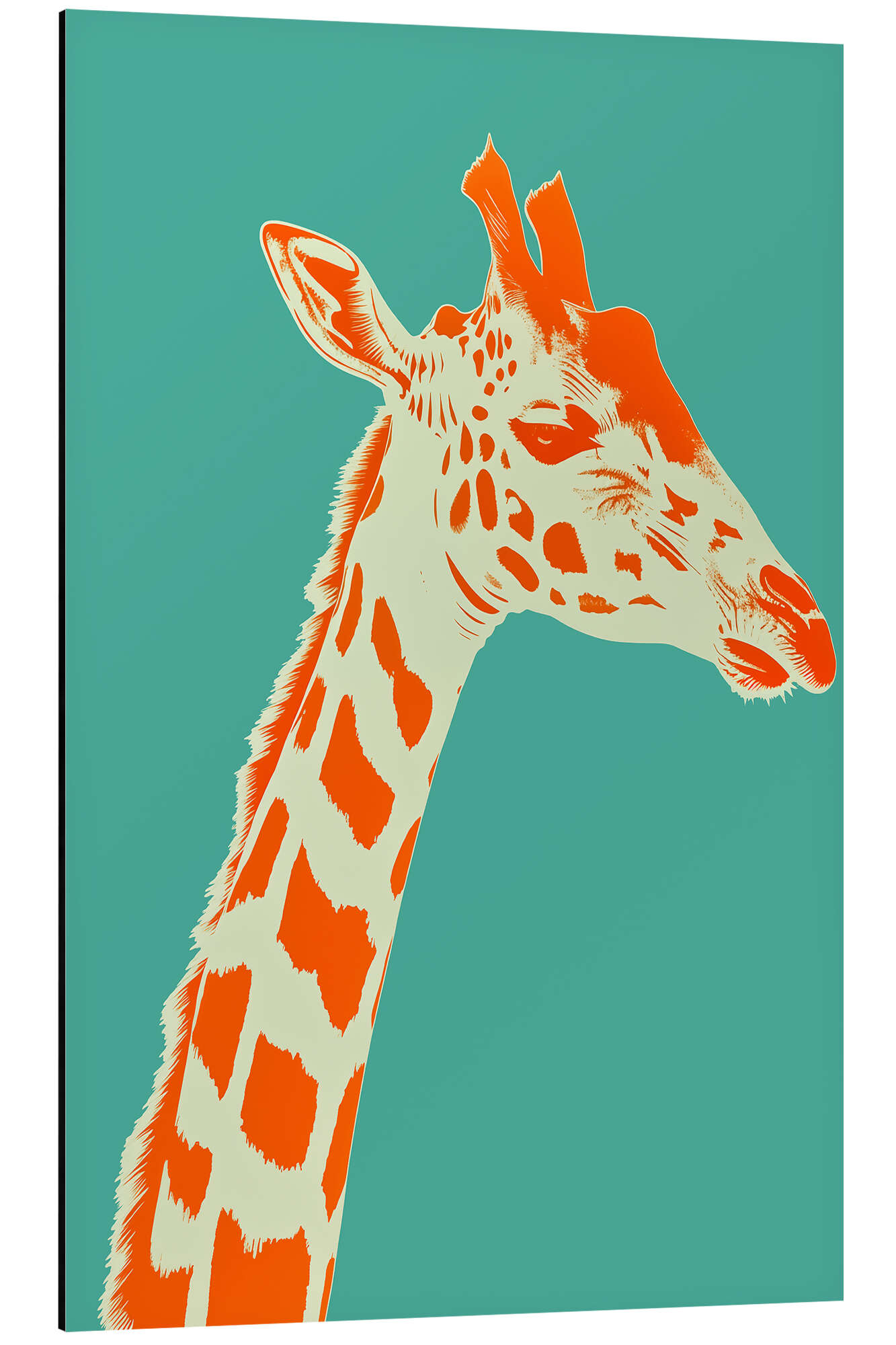 Giraffenportrait in Pfirsich und Cyan