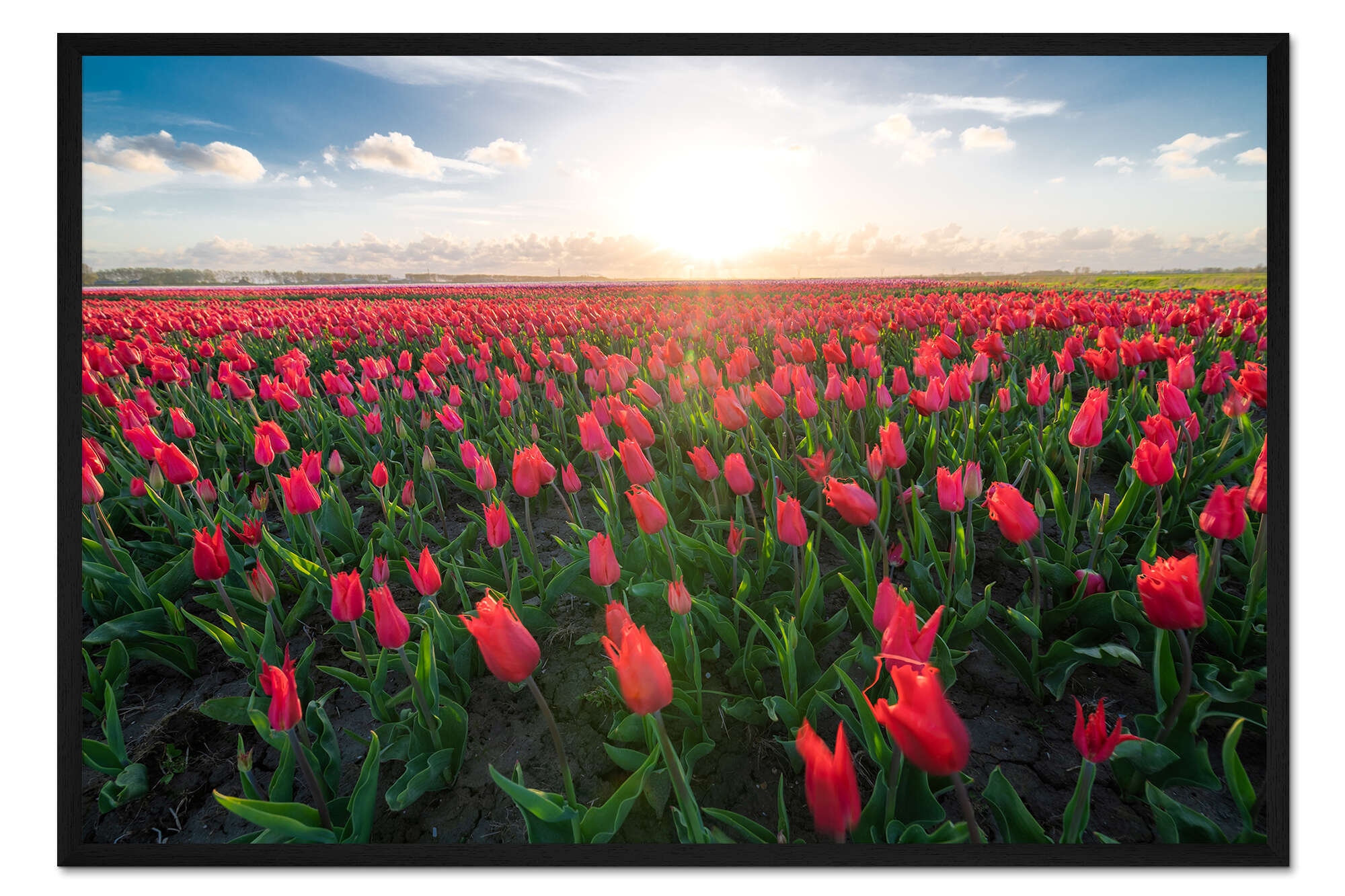 Posterlounge   Wandbilder   Fotografie   George Pachantouris   Gerahmter Kunstdruck Rotes Tulpenfeld und strahlende Sonne