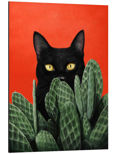 Magnettafel Schwarze Katze in Kakteen