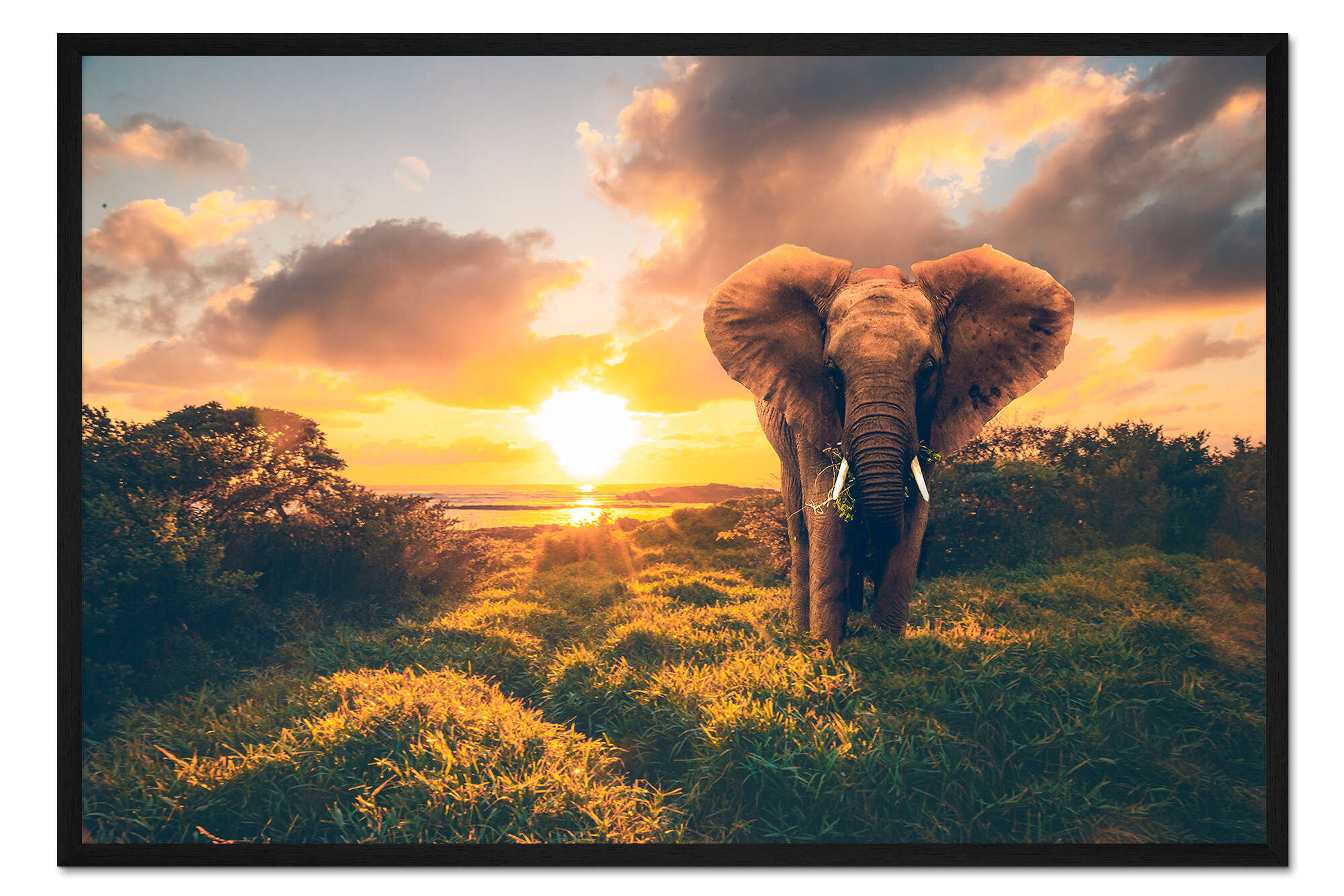 Posterlounge   Wandbilder   Natur   Sonnenuntergänge   Jan Wehnert   Gerahmter Kunstdruck Afrikanischer Elefant im Sonnenuntergang