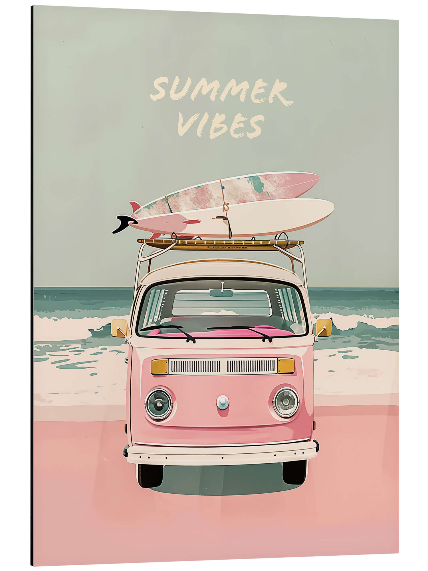 Posterlounge   Wandbilder   Rosé   Frank Daske   Magnettafel Summer Vibes - Pink Camper Van mit Surfbrettern