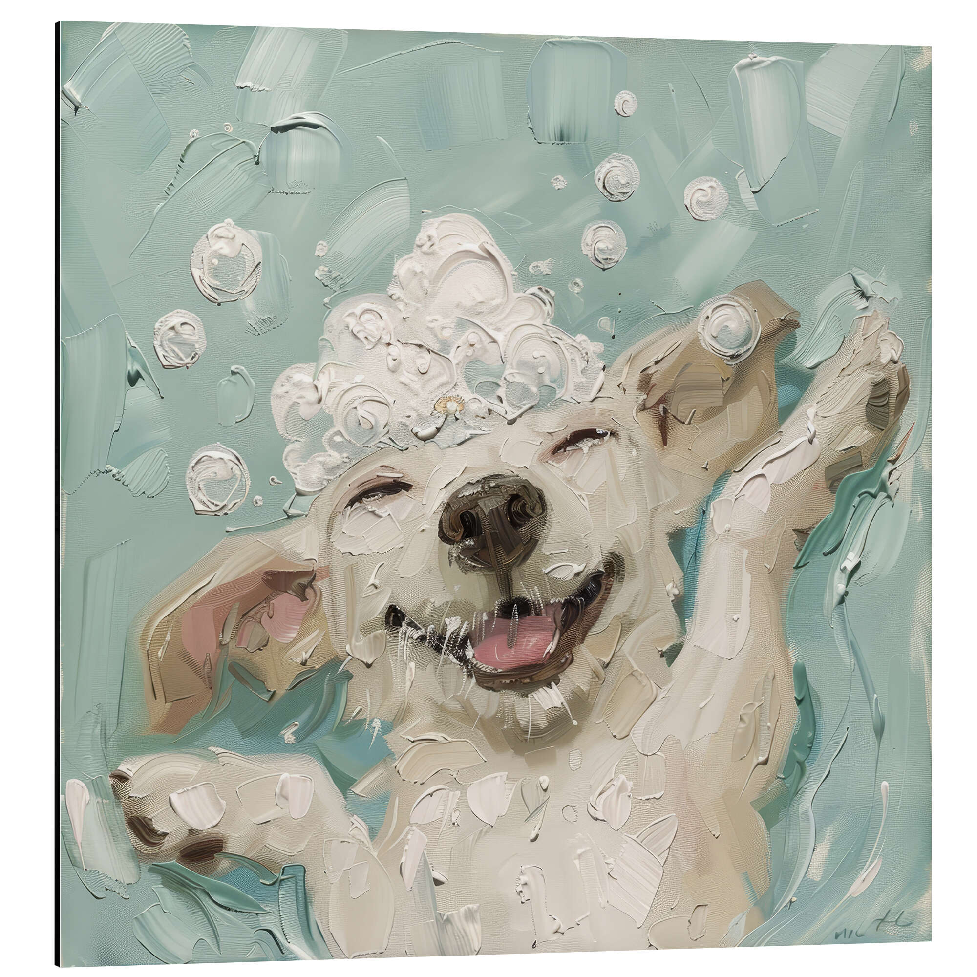 Posterlounge   Wandbilder   Blau   DejaReve   Magnettafel Glücklicher Hund im Badezimmer