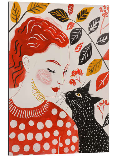 Posterlounge   Wandbilder   Illustration   Frank Daske   Magnettafel Rothaarige Frau mit Schwarzer Katze