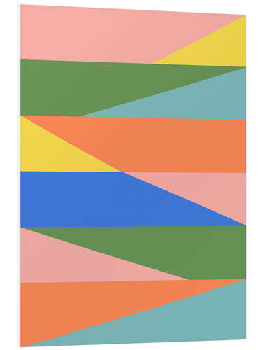 Hartschaumbild Geometrische Abstraktion in Frühlingsgrün, Pfirsich und Blau