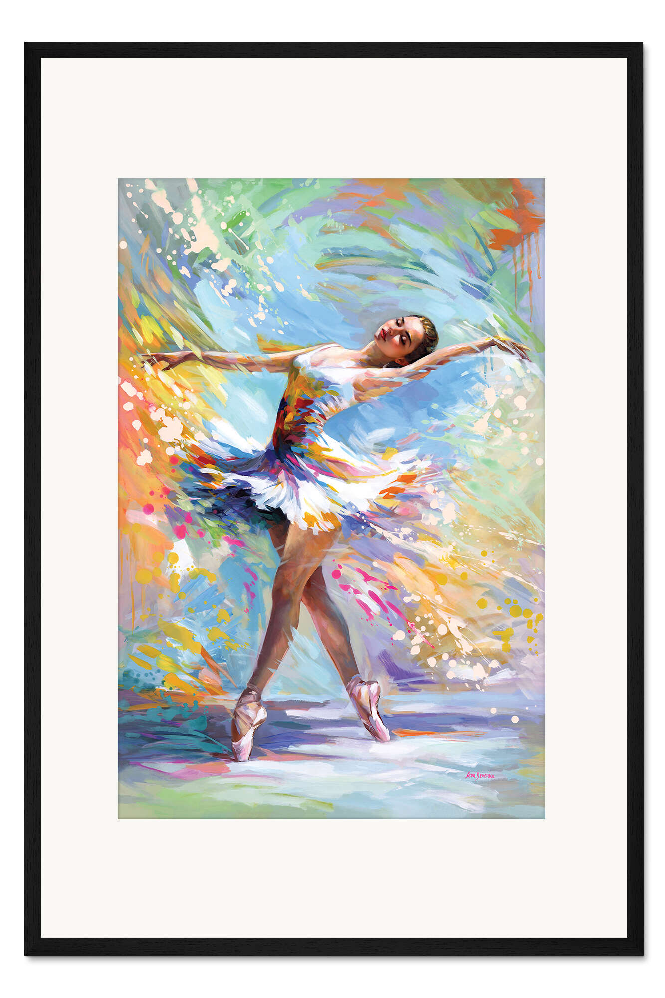 Posterlounge   Wandbilder   Modern   Leon Devenice   Gerahmter Kunstdruck Ballerina in einem Farbenorchester
