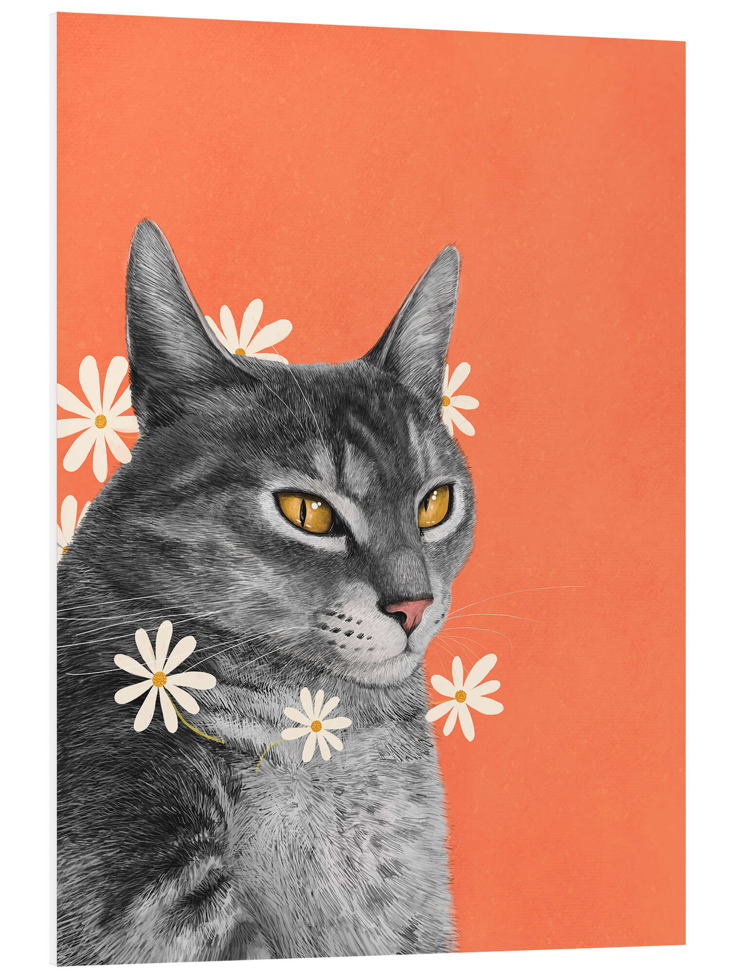 Posterlounge   Wandbilder   Rosé   Valeriya Korenkova   Hartschaumbild Katze mit Kamillenblüten
