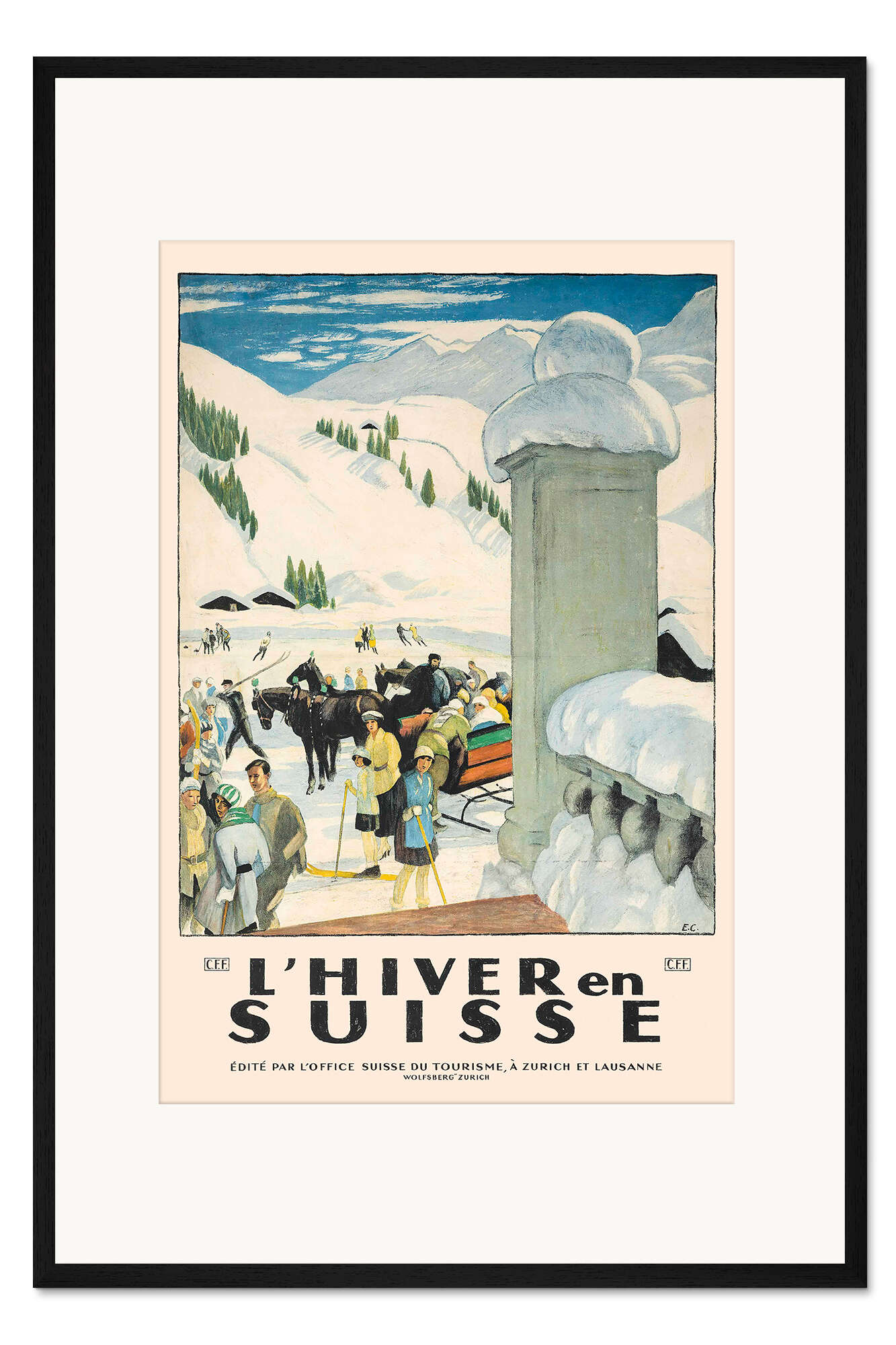 Posterlounge   Wandbilder   Natur   Winter   Vintage Ski Collection   Gerahmter Kunstdruck Winter in der Schweiz (französisch)