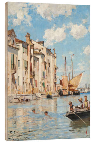 Posterlounge   Wandbilder   Blau   Holzbild Kinder beim Baden - Carl Skanberg, 1882