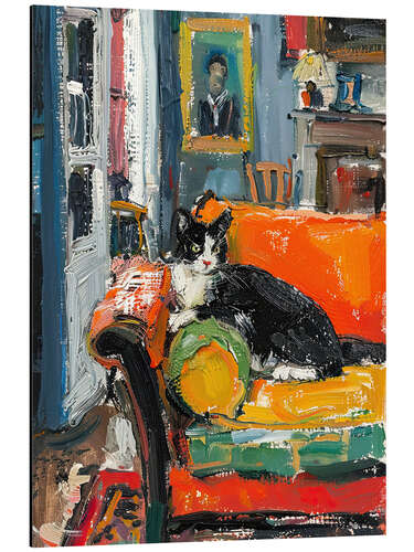 Magnettafel Schwarz-weiße Katze auf dem Sofa
