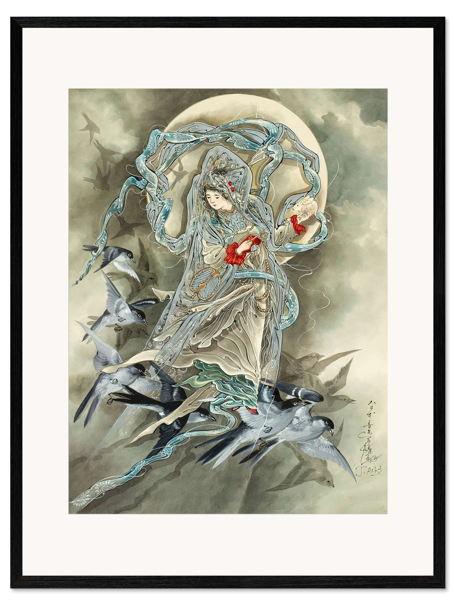 Gerahmter Kunstdruck Frau mit Vögeln