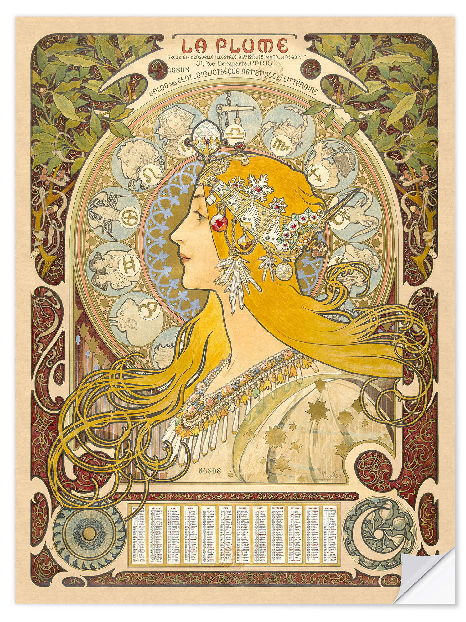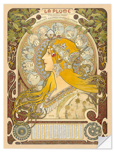 Posterlounge   Wandbilder   Menschen   Frauen   Alfons Mucha   Wandsticker La Plume - Zodiac, 1896