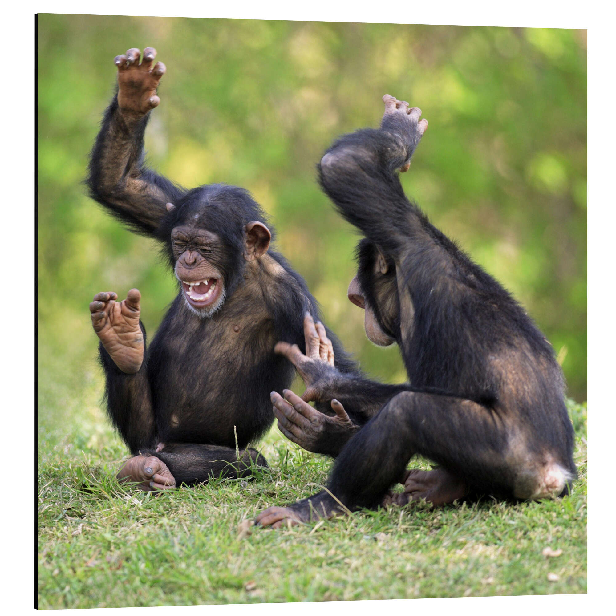 Posterlounge   Wandbilder   Grün   Jurgen & Christine Sohns/FLPA   Alubild Schimpanse, weibliches Alttier mit spielenden Jungen
