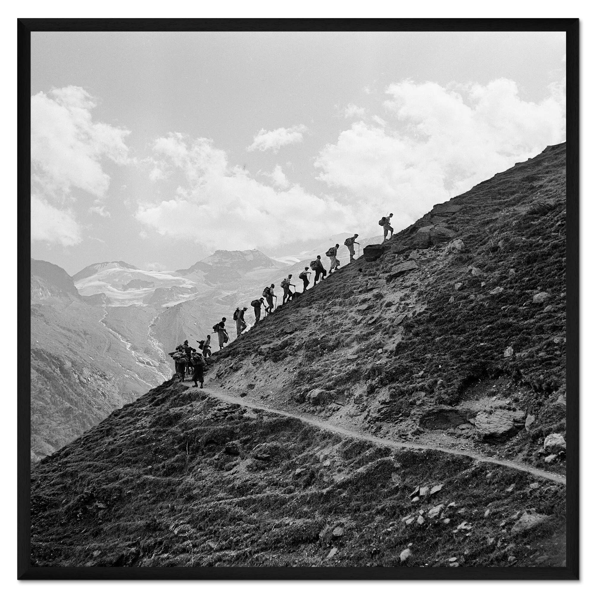 Posterlounge   Wandbilder   Fotografie   Nostalgie   Gerahmter Kunstdruck Eine Wandergruppe in den Schweizer Bergen