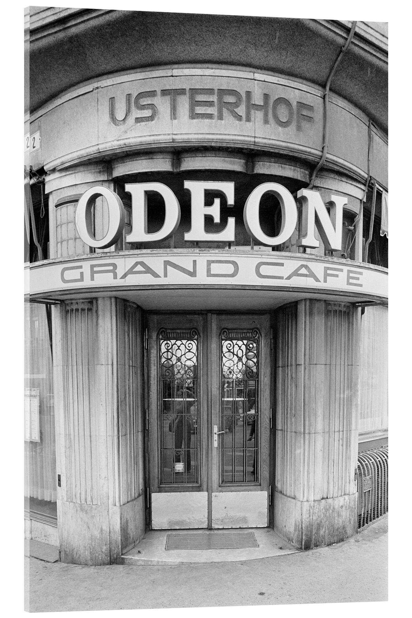 Posterlounge   Wandbilder   Schwarz-Weiß   Acrylglasbild Grand Cafe Odeon am Bellevueplatz, Zürich, 1970