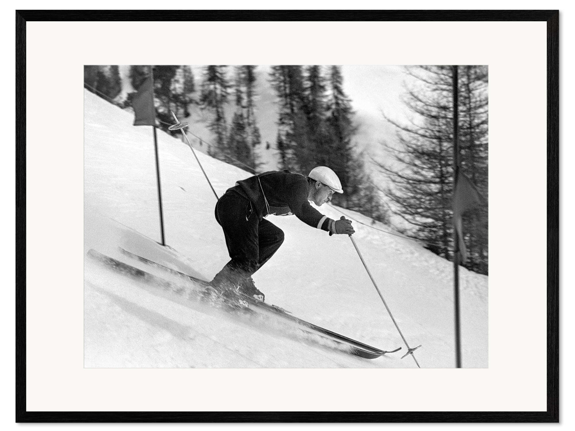 Gerahmter Kunstdruck Skirennfahrer Edi Reinalter, 1948