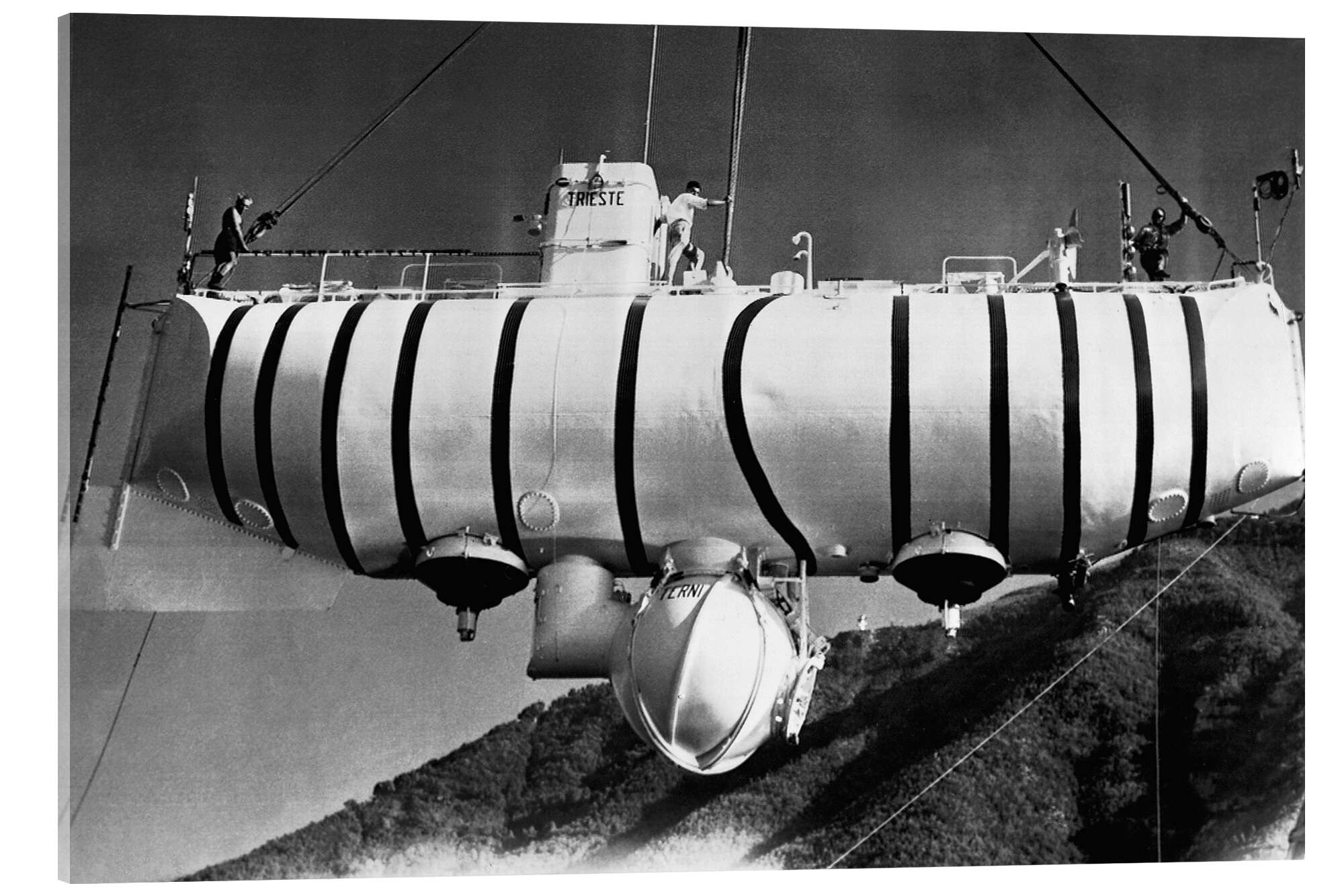 Posterlounge   Wandbilder   Schwarz-Weiß   Acrylglasbild Stapellauf der Bathyscaphe Trieste, 1960