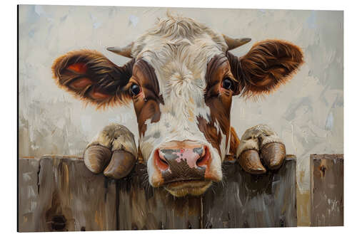 Magnettafel Kuh auf dem Zaun
