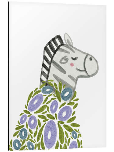 Alubild Zebra mit Blumen bedeckt