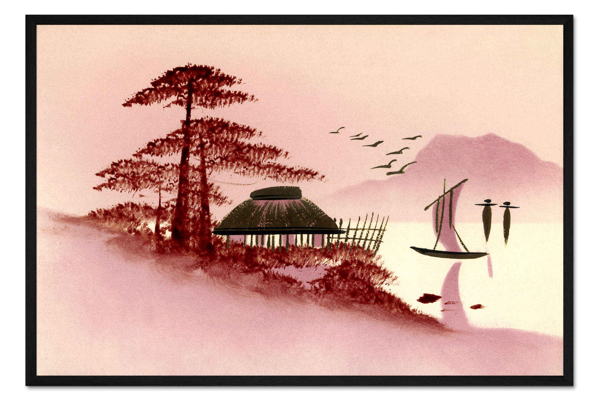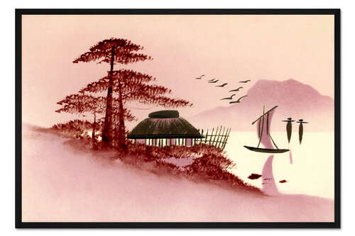 Posterlounge   Wandbilder   Landschaften   Gerahmter Kunstdruck Lila japanische Landschaft mit Boot und See