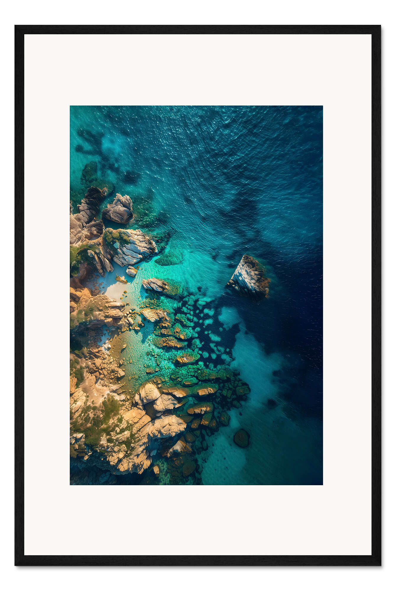 Posterlounge   Wandbilder   Blau   Christian Müringer   Gerahmter Kunstdruck Luftbild Felsküste in Sardinien, Italien