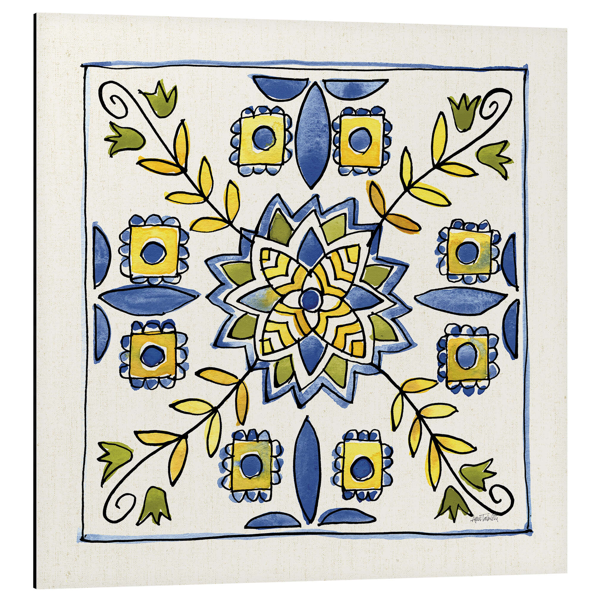 Florale Fliese in Blau-Gelb-Grün
