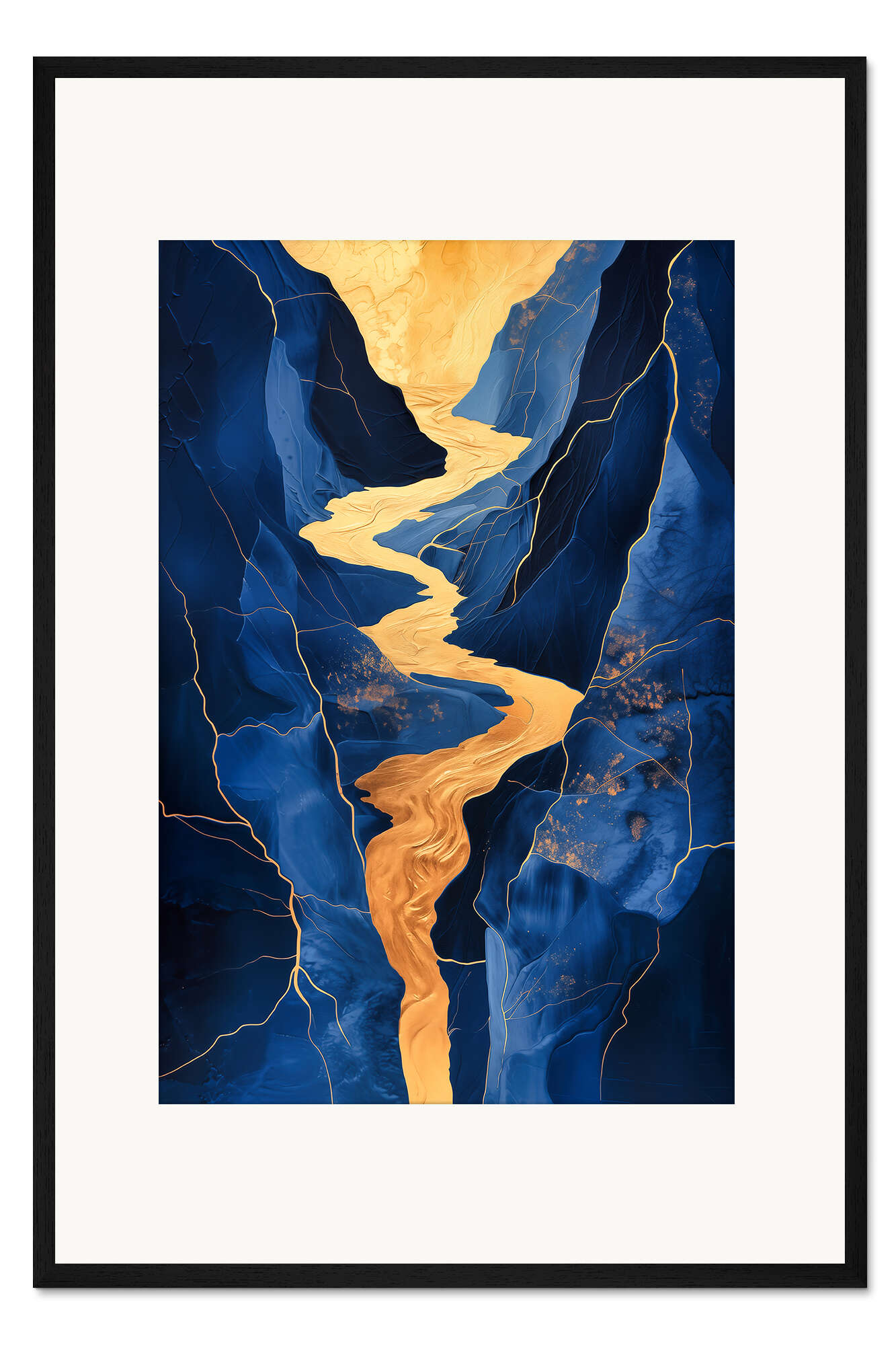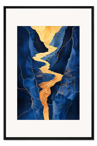Posterlounge   Wandbilder   Blau   Frank Daske   Gerahmter Kunstdruck Goldener Wasserfall in Blauen Bergen