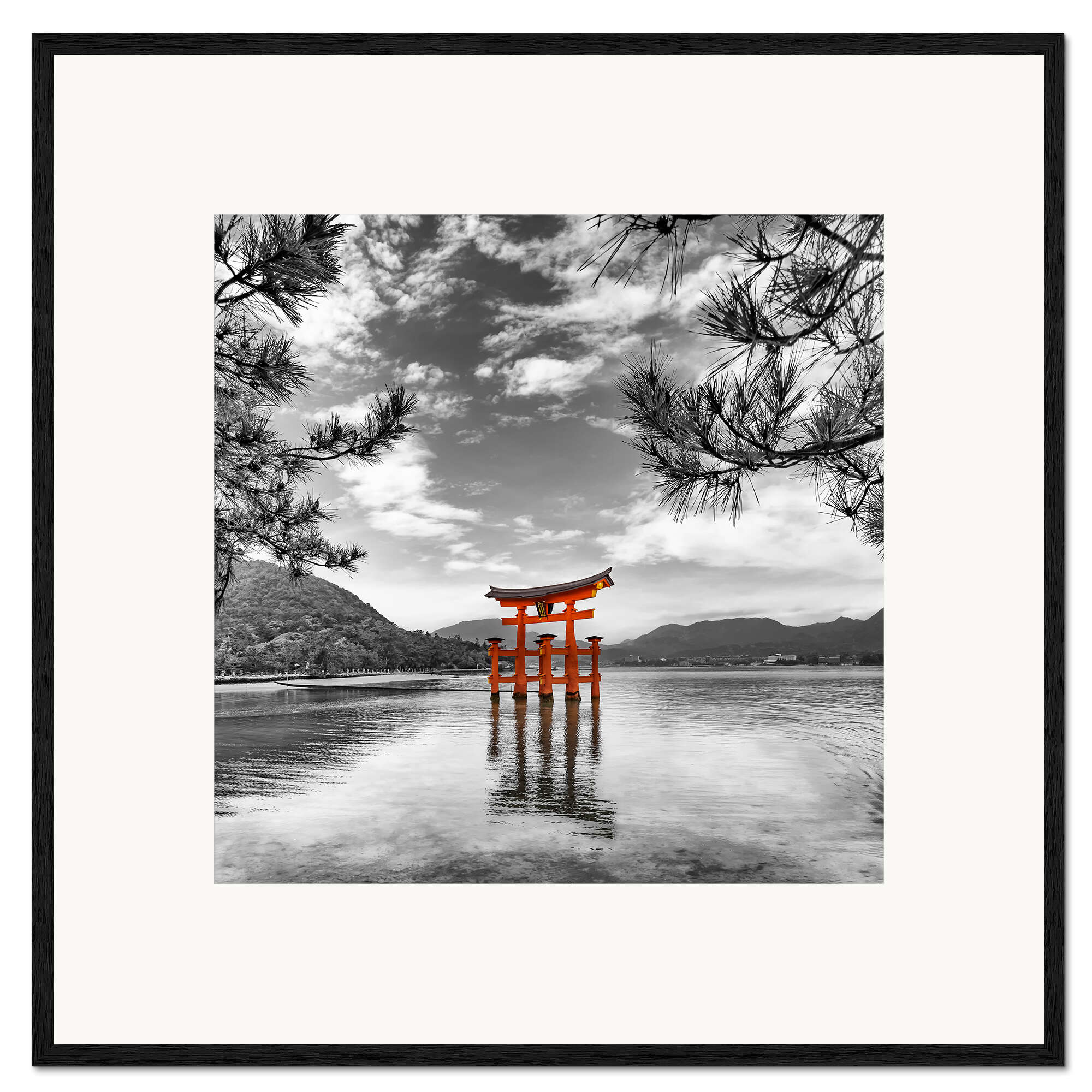 Posterlounge   Wandbilder   Schwarz-Weiß   Melanie Viola   Gerahmter Kunstdruck Zinnoberrotes Tor des Itsukushima-Schreins auf Miyajima