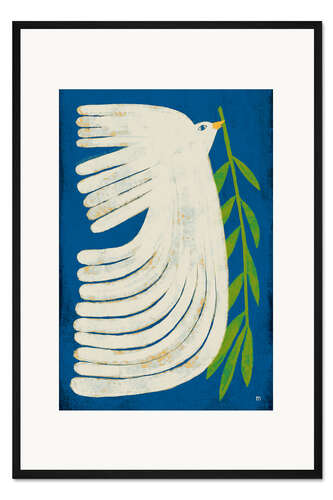 Posterlounge   Wandbilder   Blau   Marco Marella   Gerahmter Kunstdruck Weiße Friedenstaube fliegt unter blauem Himmel