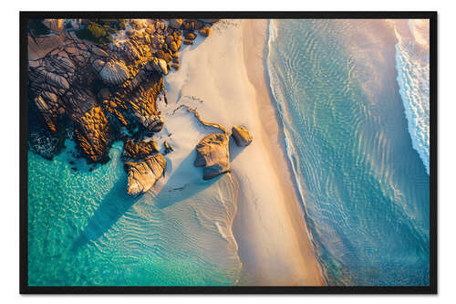 Posterlounge   Wandbilder   Fotografie   Christian Müringer   Gerahmter Kunstdruck Luftbild Sonnenuntergang am Strand in Victoria, Australien