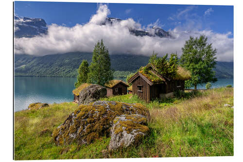 Gallery Print Urige Almhütten Breng Seter, See Lovatnet, Norwegen