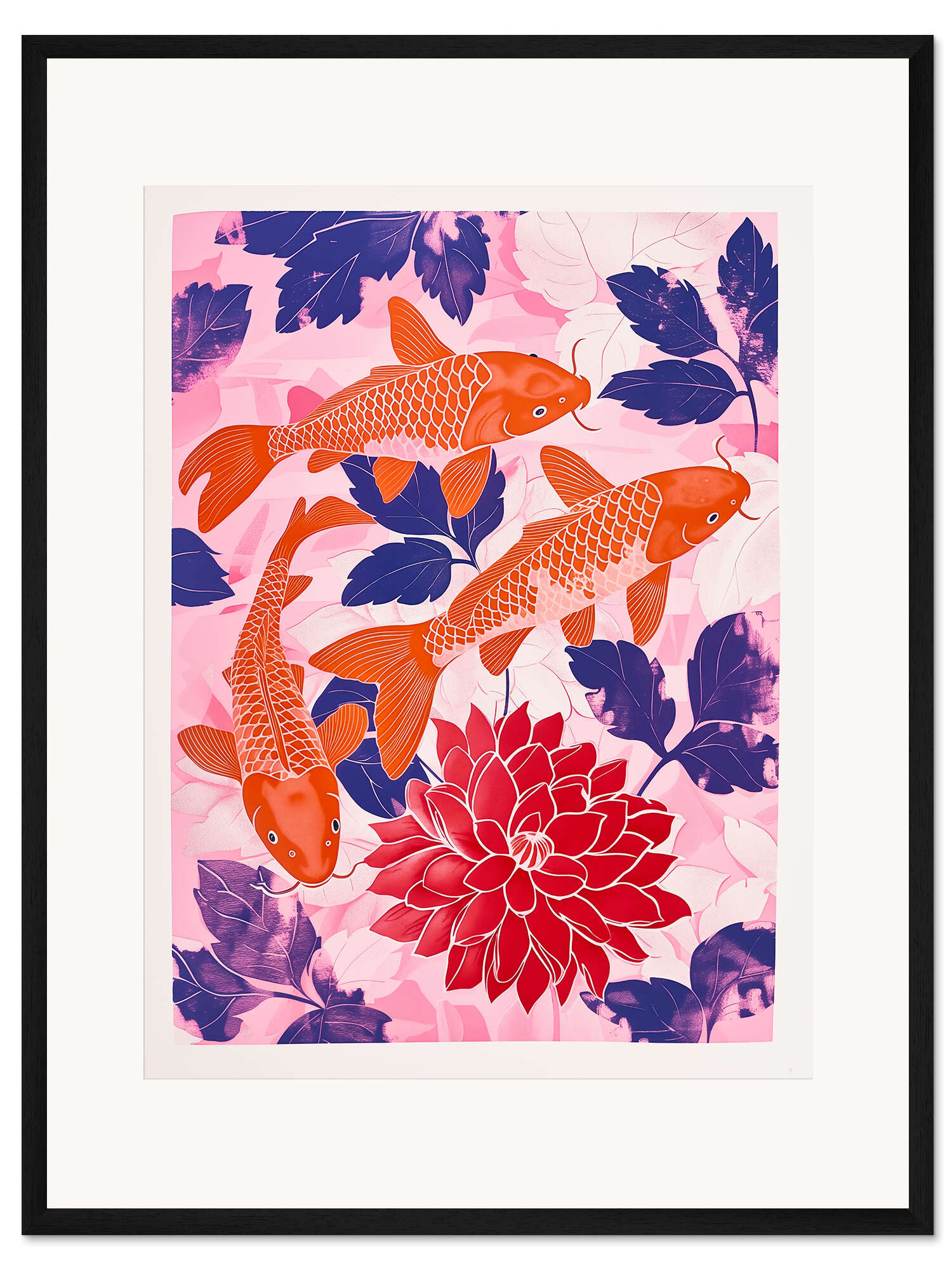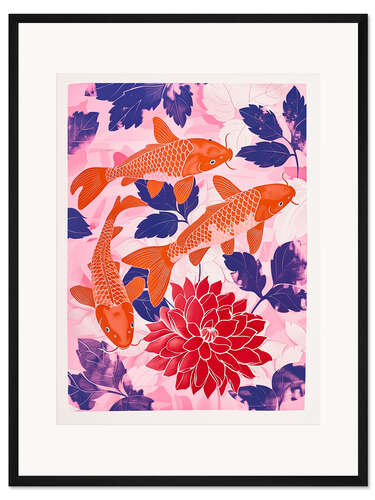 Posterlounge   Wandbilder   Boho   Frank Daske   Gerahmter Kunstdruck Orange Kois und Rosa Dahlien