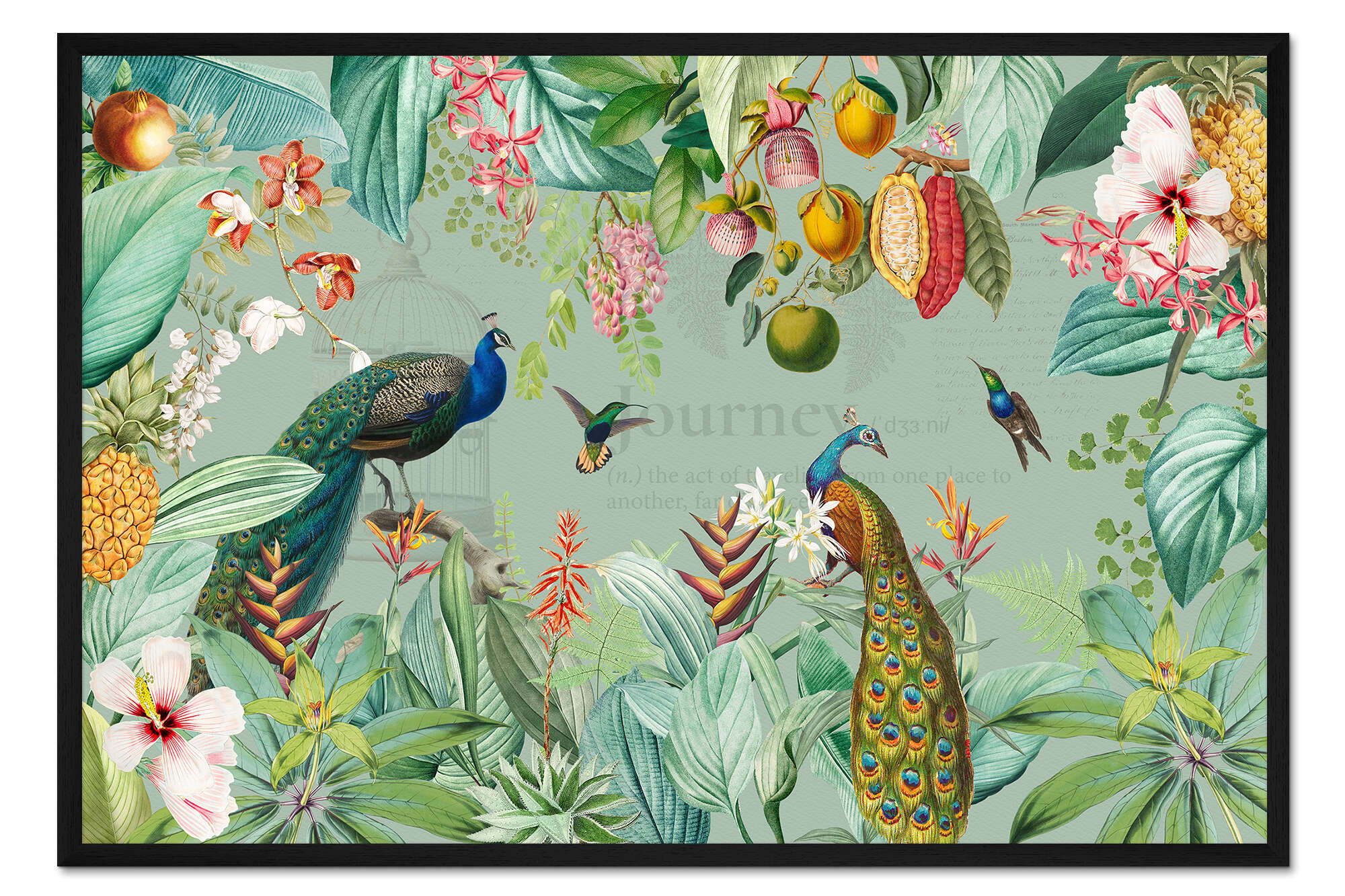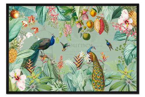 Posterlounge   Wandbilder   Illustration   Collage   UtArt   Gerahmter Kunstdruck Exotische Pfauen im Dschungel II