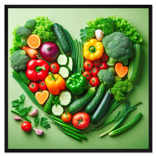 Posterlounge   Wandbilder   Fotografie   Fotocollage   nobelart   Gerahmter Kunstdruck Frisches Gemüse in Herzform auf grünem Hintergrund
